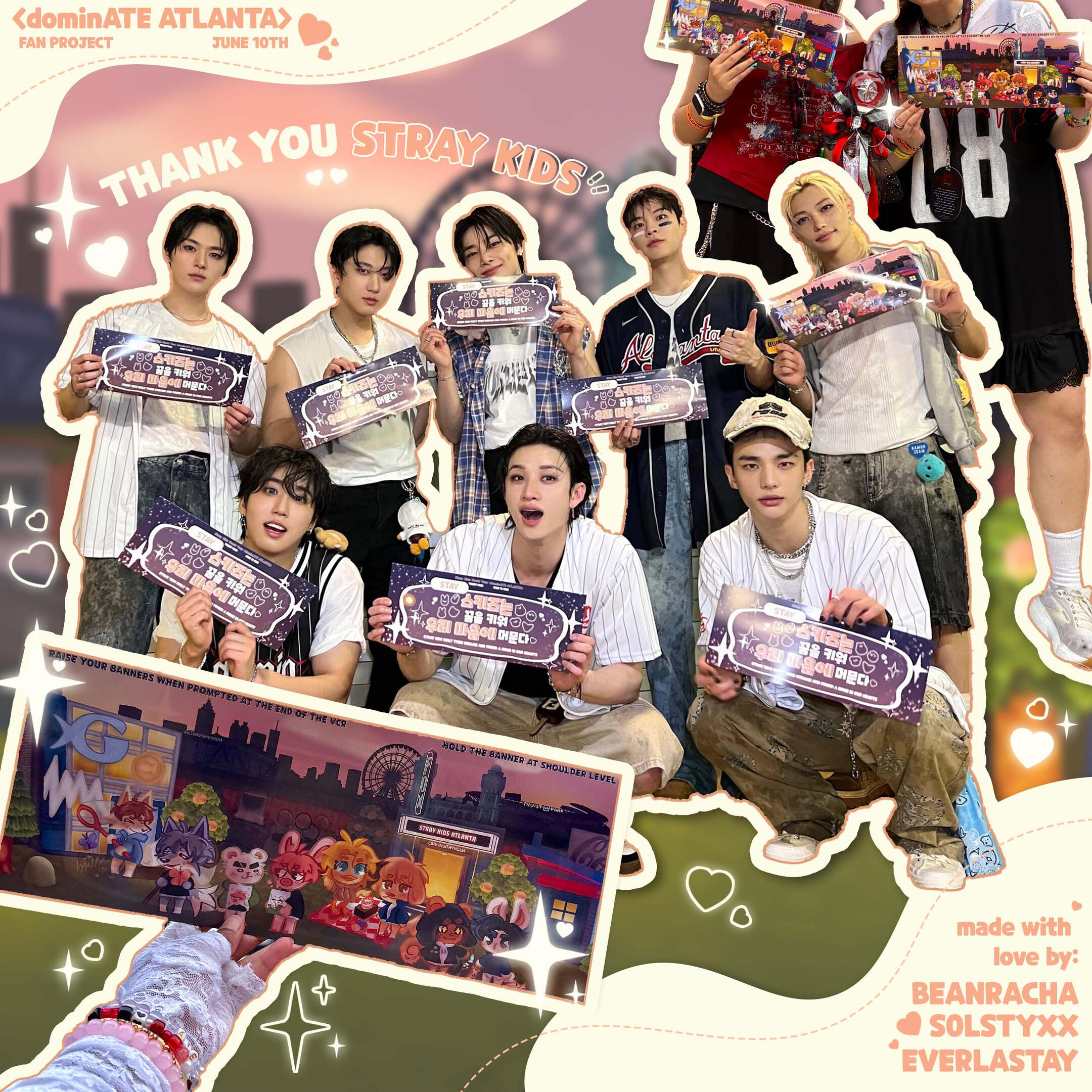 I had the highest of honors in collaborating with two amazing creators in developing a fan project for the Kpop group Stray Kids for their 2025 Stadium World Tour, <dominATE ATLANTA> that took place in Truist Park, Stadium of the Atlanta Braves. To get this project submitted, we worked along side JYP Entertainment and Live Nation setting out any rules, regulations and any further details to get it working.The fan project was a love letter to the group in exploring the ways they capture the hearts of STAY through traversing through the lands of many video game worlds in order to find their way back home.In this project, I designed the front of the banner showcasing the message STAY would like to send to Stray Kids. I designed using Adobe Photoshop as well as additionally any design details in procreate.Additionally, I was the Final Cut editor for the video project that was showed in tandem with the banner reveal. I used Adobe After Effects to edit it all together.—Professional yap aside, this moment is crazy to me. My ults?? Loving something me and my friends created. This meant the world to me to do and was worth all the hardships it took in order to get here. It challenged me in many creative ways that I haven’t began to process. I would do it all over again if ever given the opportunity.